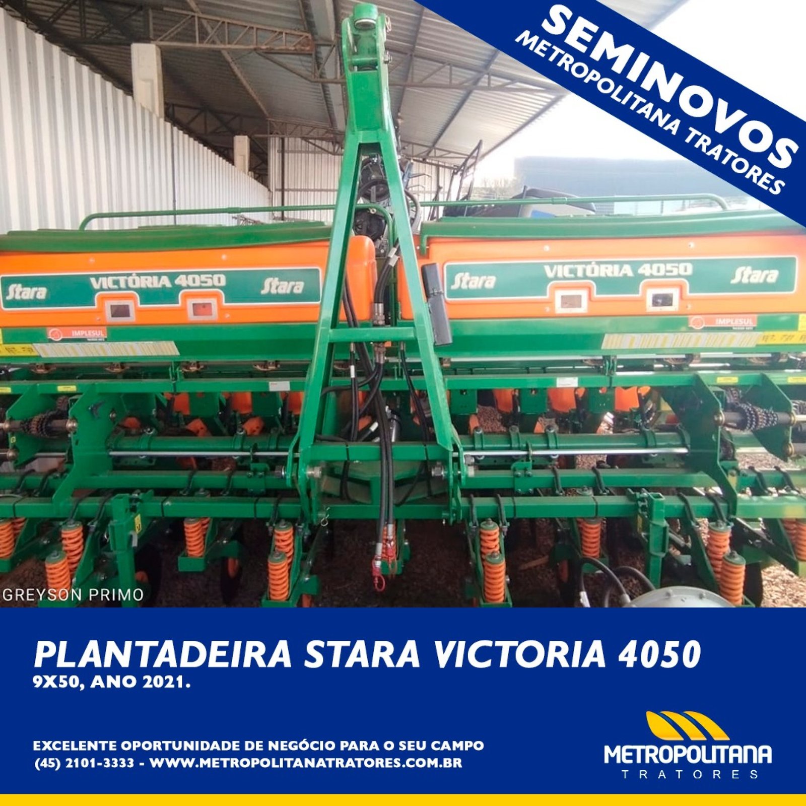 Plantadeira marca Stara, modelo Victória 4050 09x45, mecânica, disco e haste escarificadora, ano 2021 (sem uso).