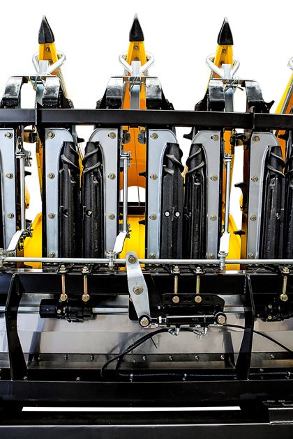 A Plataforma de Milho New Holland possui guias de aço que protegem as ponteiras plásticas contra o desgaste do contato com o solo, aumentando sua vida útil. Destaque também para as chapas despigadoras, que são produzidas com material estrutural de alta resistência, assegurando a máxima durabilidade e qualidade da máquina.