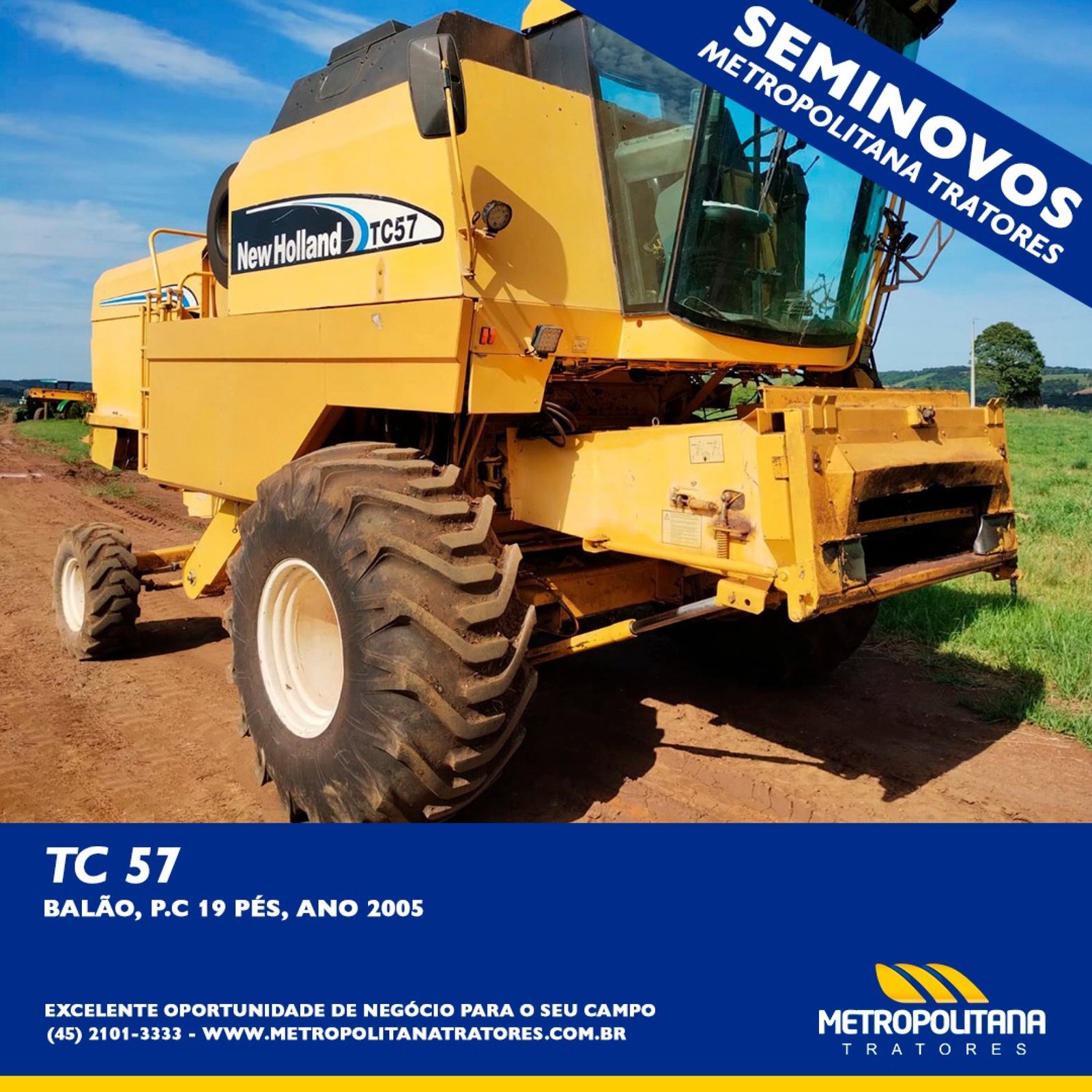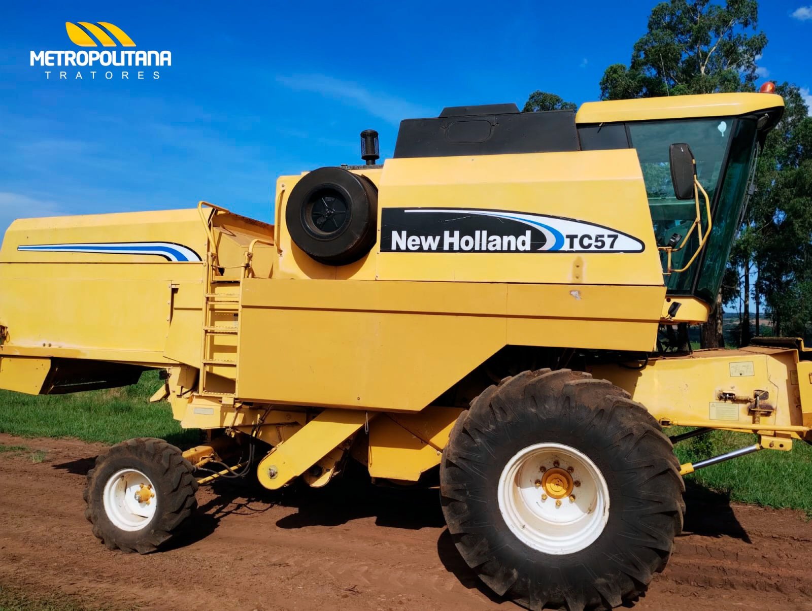 New Holland TC 57 Hydro, peneira nivelante, plataforma de 19 pés, ano de fabricação 2005